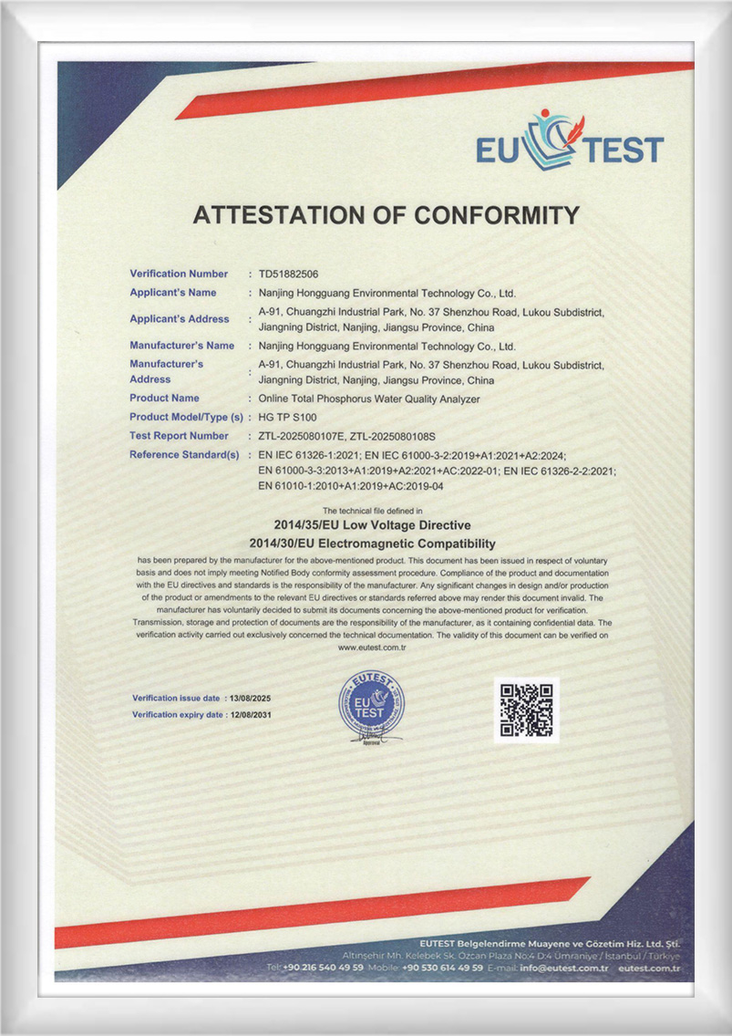Date : octobre 2022Lieu : Anhui Ma'anshanProjet : Surveillance des eaux usées industriellesParamètres de surveillance : DCOcr, azote ammoniacal, phosphore total, azote total, chrome total